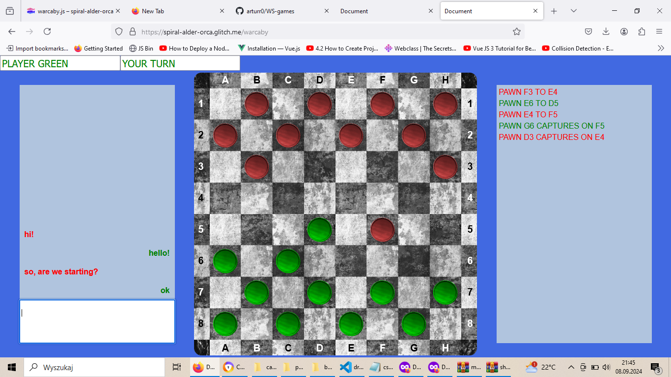 The project is in the production phase. It is a platform for card and board games, designed for multiple players. The connection is based on the WebSocket protocol. Server data is currently stored in a JSON file, but eventually, this function will be taken over by a database (SQL or MongoDB). Users will be able to participate in tournaments and integrate their own games. I also plan to add AI players based on Python libraries.